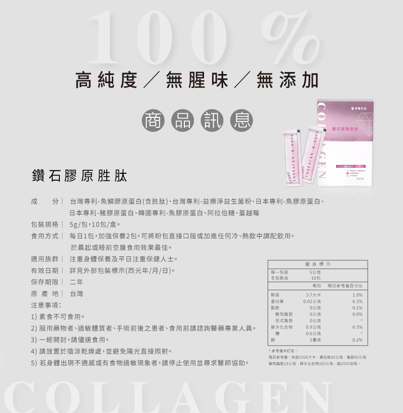 每包含4500mg以上膠原蛋白(無額外添加劑)