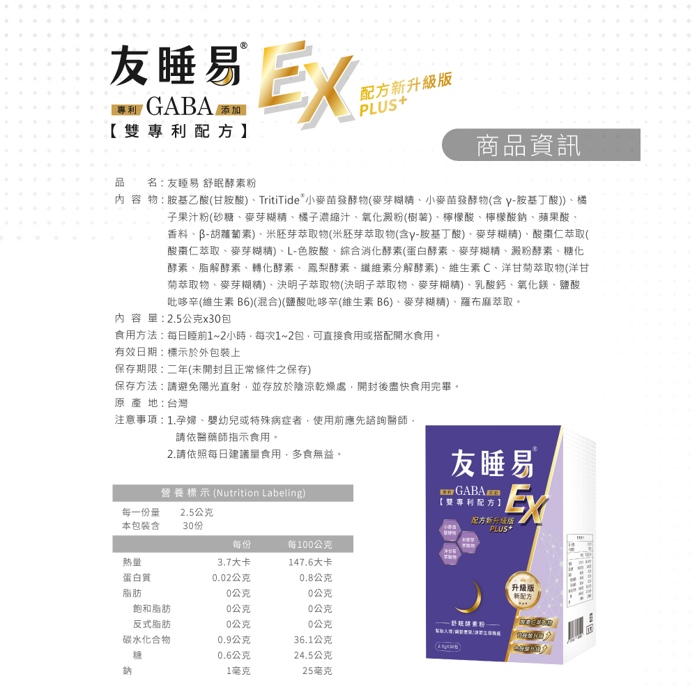 買一送一專案【友睡易EX】30包/組+麥角硫因10包/組
