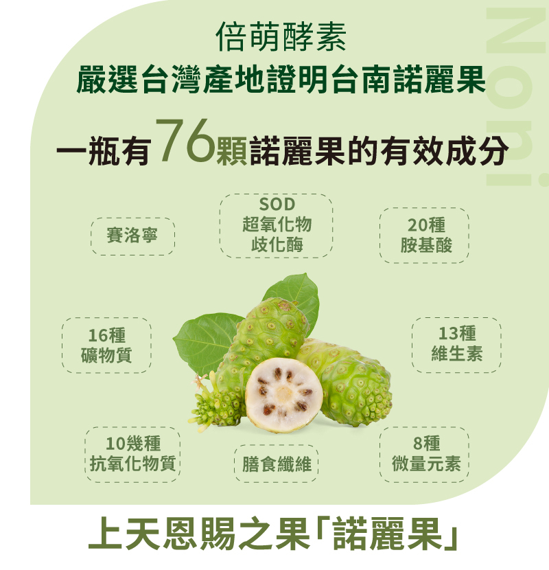 ▪️16顆綠檸檬及76顆諾麗果萃取而成