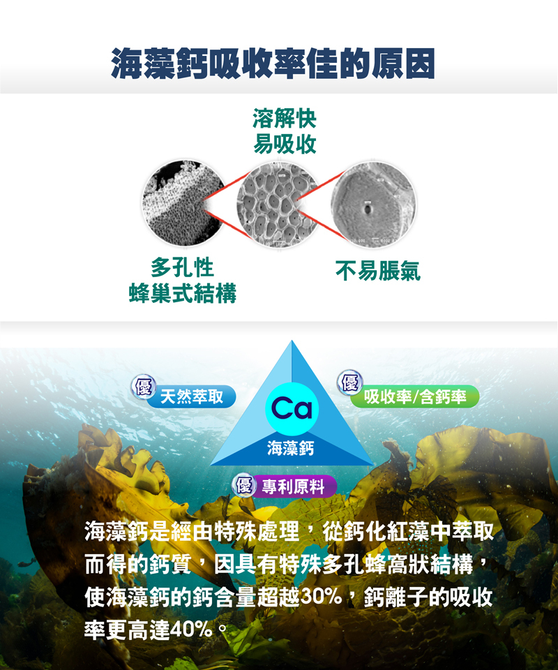 具有特殊多孔蜂窩狀結構,使海藻鈣的鈣含量超越30%