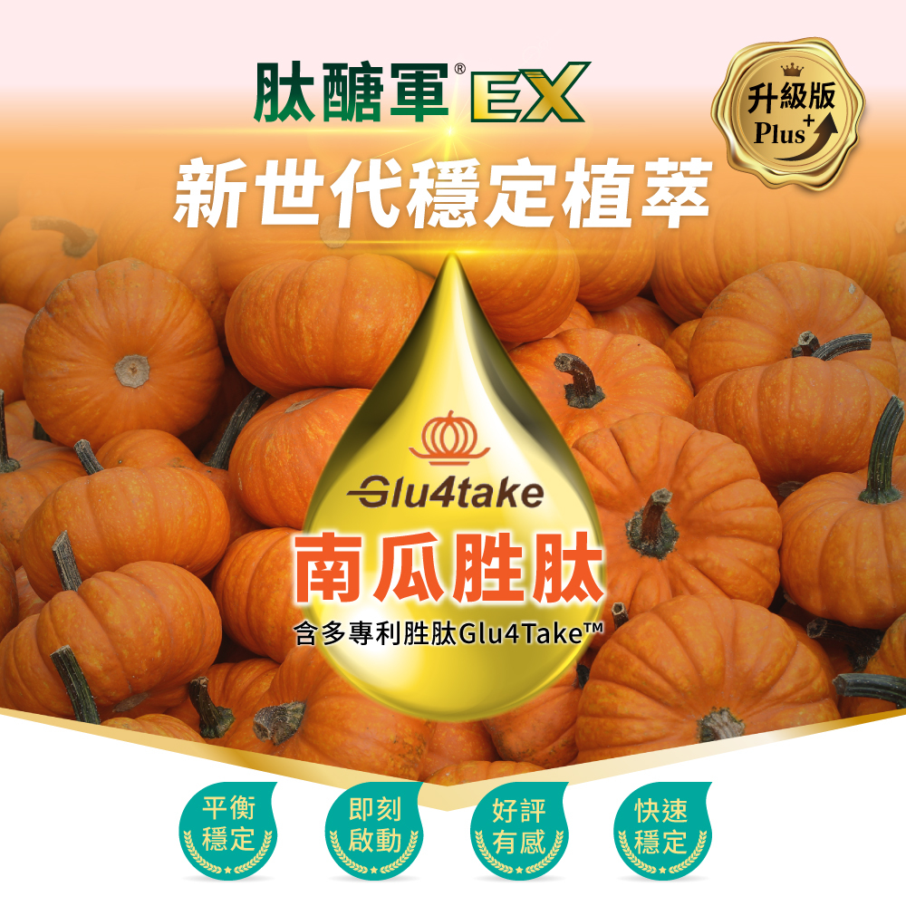 ✔︎除了苦瓜胜肽,南瓜胜肽Glu4Take是穩定的第一、二把鑰匙